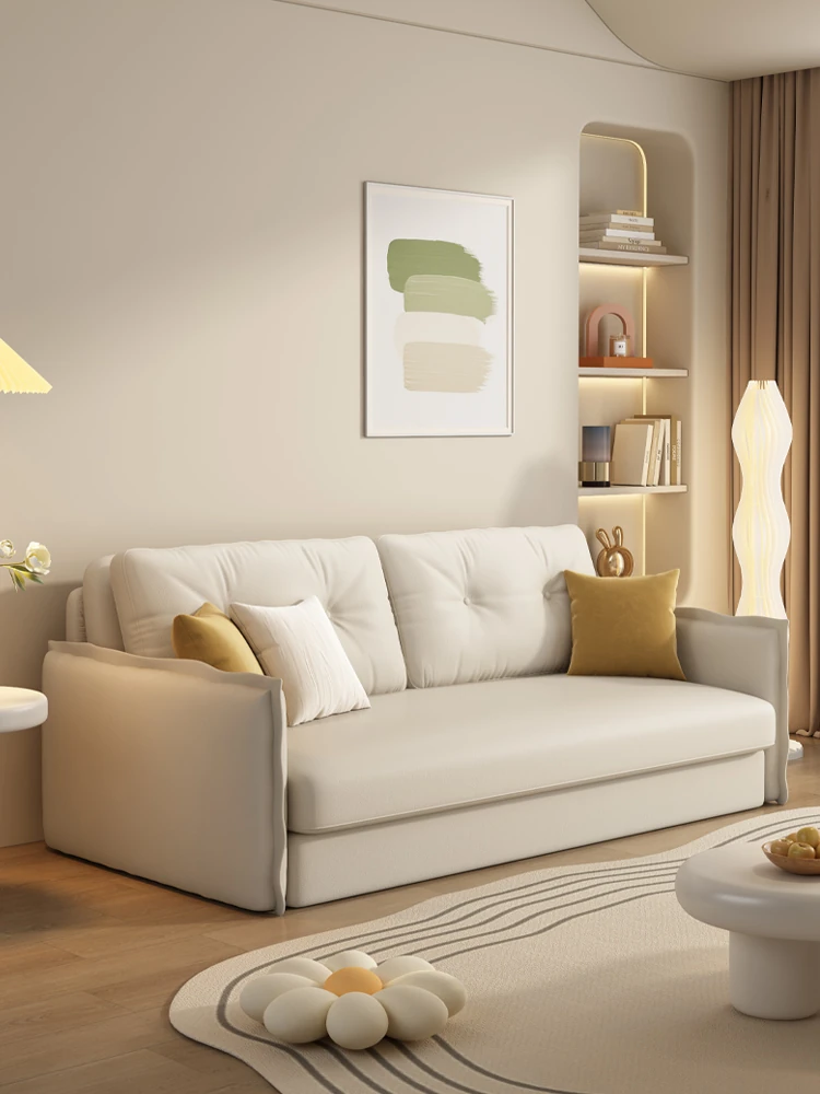 クリーミーな風合いの多機能ソファベッド|収納&折りたたみ可能!おしゃれで使い勝手抜群の小型リビングに最適なネット人気モデル