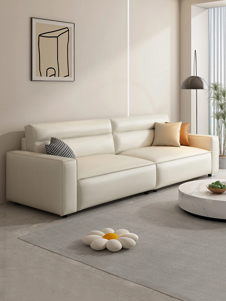 イタリアンクリーム風 三人掛けソファ 小型住宅向け 雲のようなモダンシンプルデザイン テクスチャー豊かな生地使用の直線デザインソファ で、リラックスできる心地良い空間を演出!