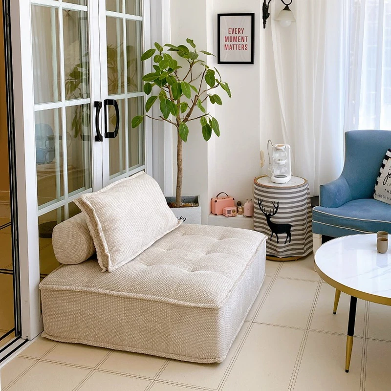 クリーミー風・リラックスソファ|小スペース向け・おしゃれな布製・洗濯可能・折りたたみ式・タタミ風・豆腐ブロックデザイン|民宿にも最適なおしゃれソファ!