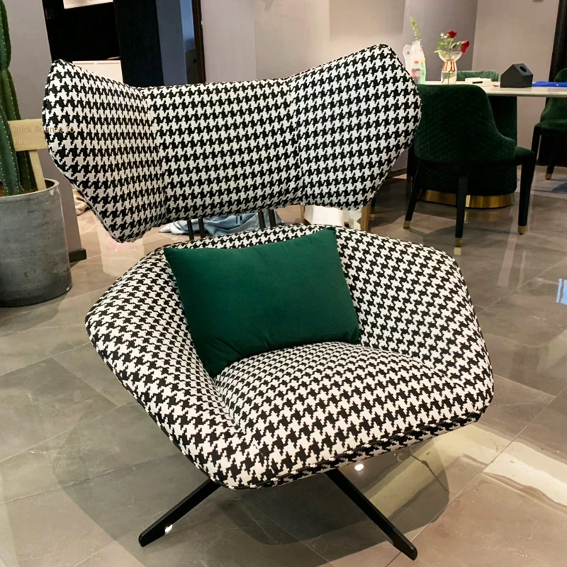 Scandinavian Minimalist Houndstooth Accent Chair - Stylish High-Back Rotating Lounge Chair for Relaxation, Modern Designer Lazy Tiger Chair, Perfect for Cozy Living Spaces