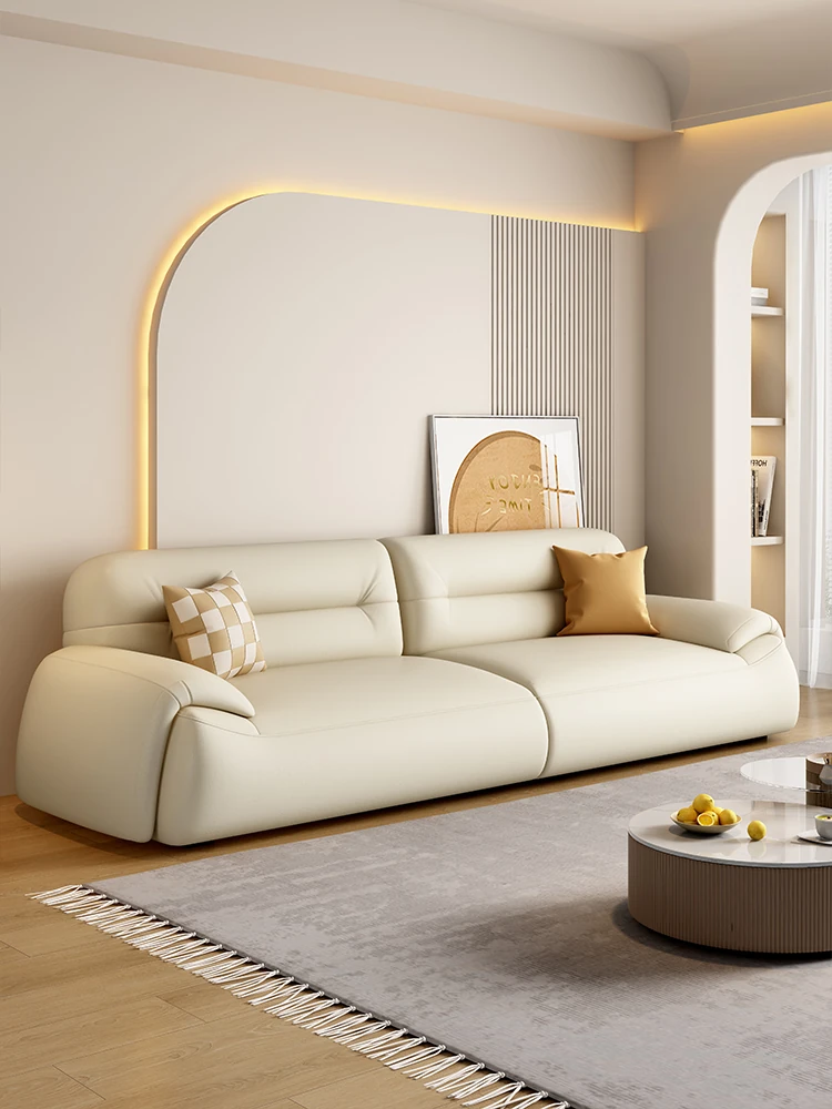 Italian Minimalist Cat Paw Leather Sofa - Modern Cream 3-Seater for Small Spaces, Perfect for Your Living Room!