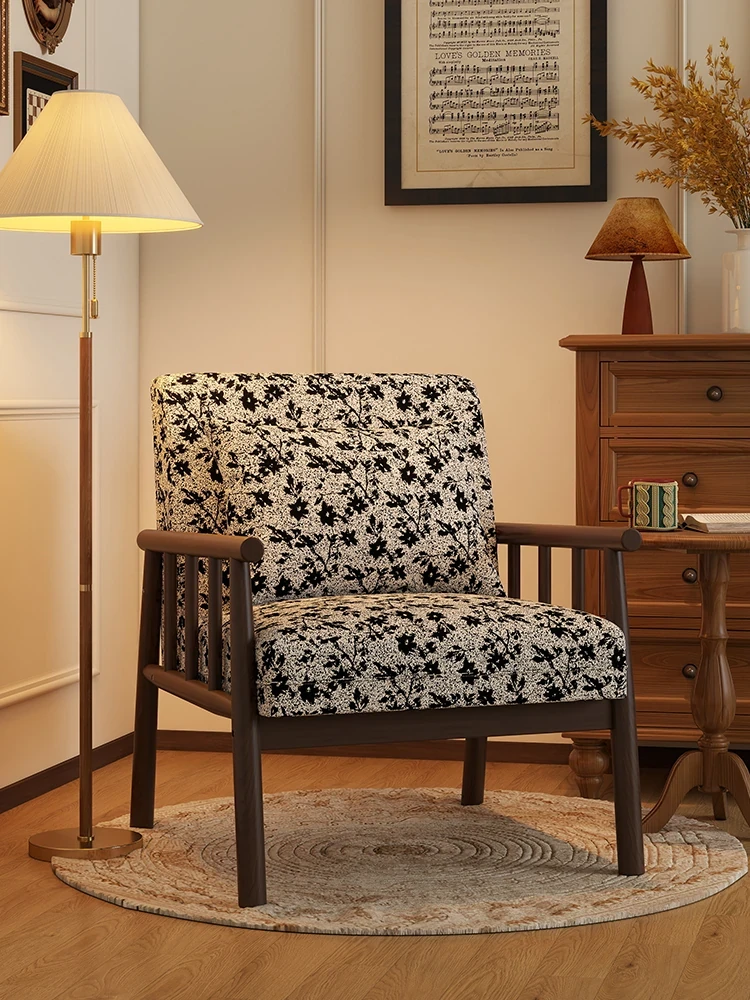 Richard French Vintage Single Sofa Chair – Stylish Solid Wood Designer Armchair for Living Room and Balcony, Perfect for Relaxation.