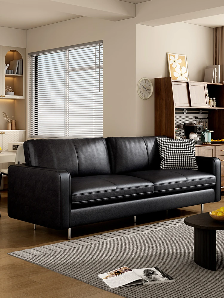 Modern Minimalist Black Leather Sofa for Living Room - Stylish Antique Design for Small Apartments, Perfect for Couples or Families (2-3 Seater)