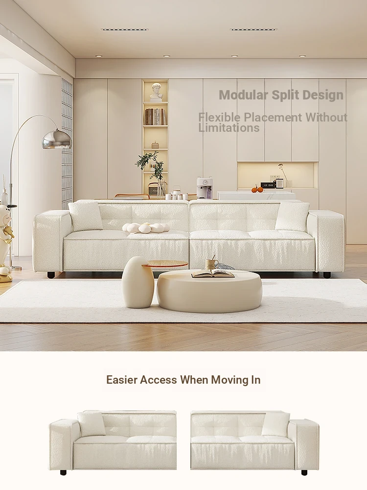2024 New Trendy Minimalist Creamy Cotton Candy Fabric Sofa for Small Living Rooms - Stylish 3-Seater Straight Sofa Perfect for Cozy Spaces