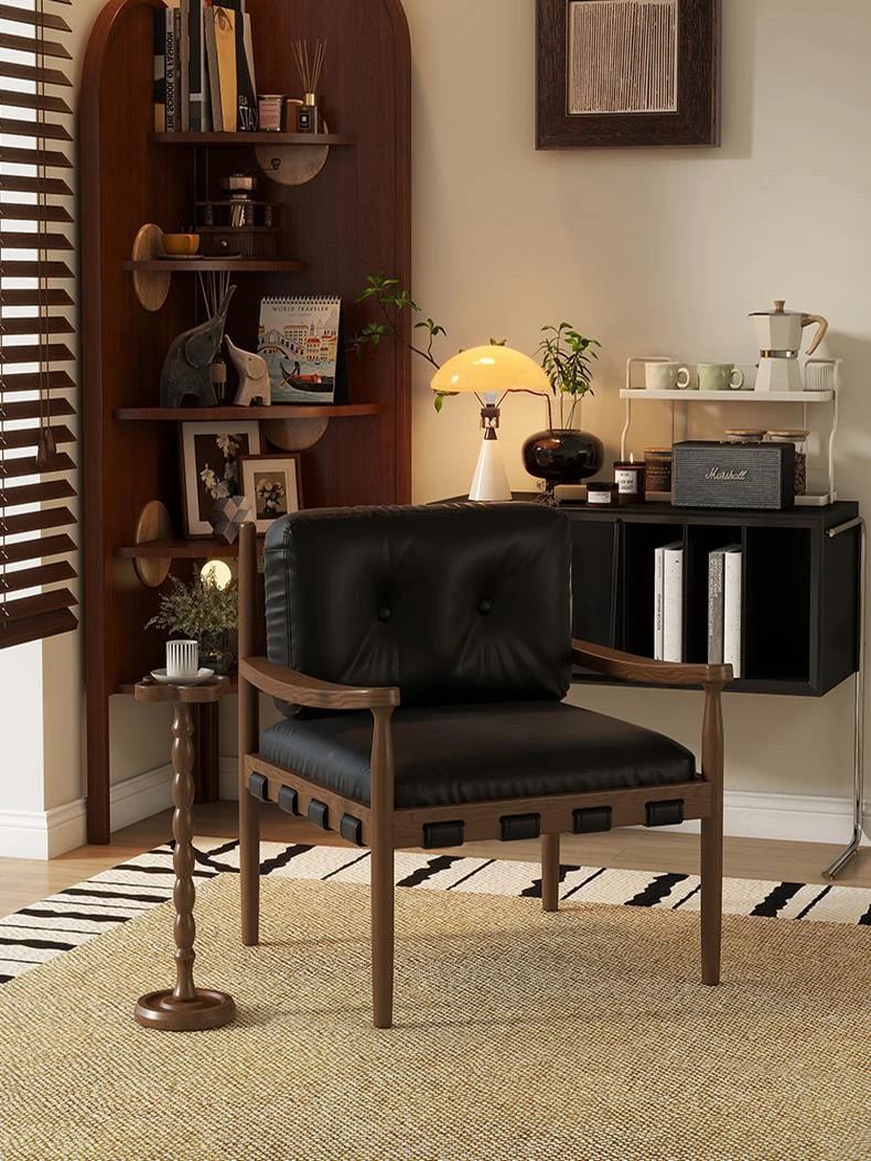 Vintage-Inspired Single Sofa Chair - Solid Wood Soft-Pack Design for Living Room, Study, or Balcony, Perfect for Relaxation with Comfortable Backrest