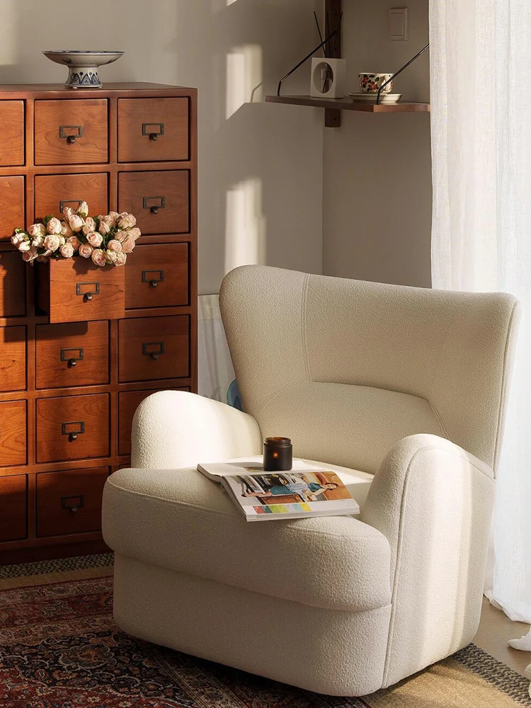 Elegant Italian-style Rotatable Single Sofa Chair - Perfect for Living Room or Balcony, Designed for Comfort and Relaxation, Ideal for Lounging and Leisure.