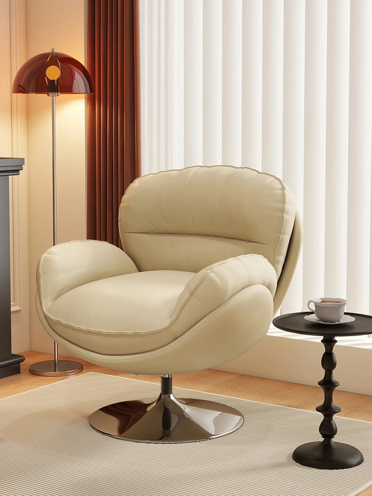 Cream Velvet Rotating Armchair – Stylish Single Sofa for Living Room and Bedroom, Perfect for Relaxation and Leisure