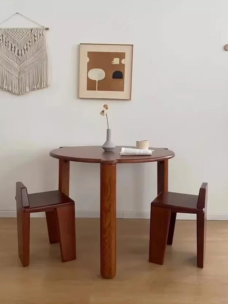 Vintage Solid Wood Dining Chair - Retro Island Stool with Backrest for Bedroom Vanity, Creative Design in Wabi-Sabi Style, Perfect for Cozy Home Décor.