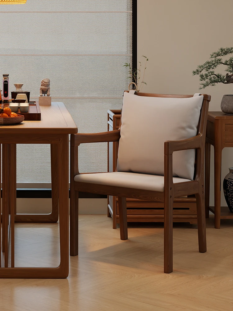 Vintage Upholstered Back Solid Wood Chair for Home Dining - Comfortable and Stylish Armchair for Restaurant Tables, New Chinese Style Grandmaster Chair