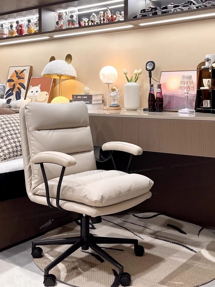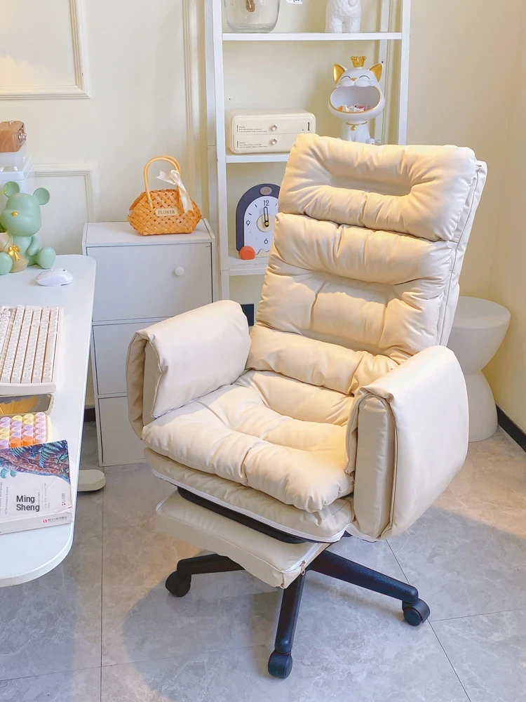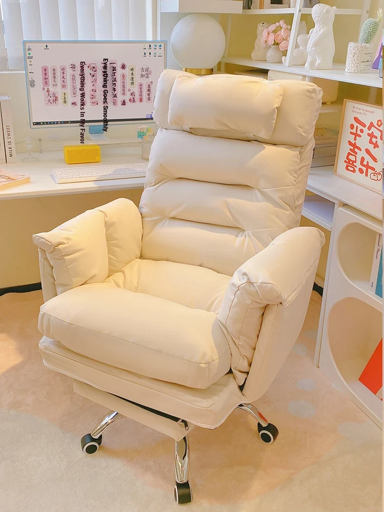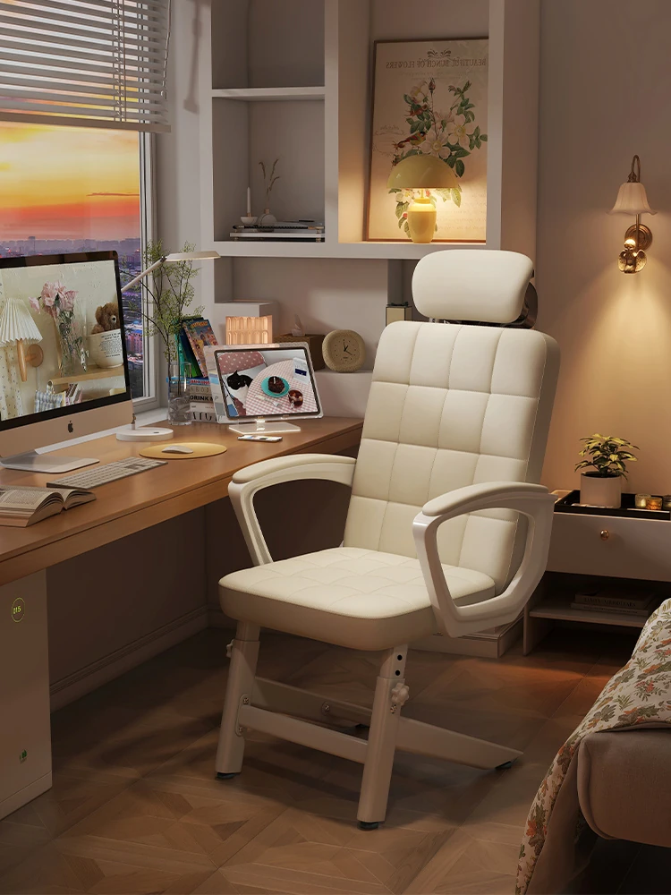 Creamy Home Office Desk Chair - Comfortable Ergonomic Design for Long Hours, Adjustable Height, Perfect for Girls' Bedrooms and Home Use