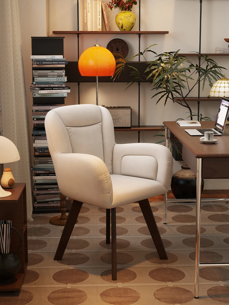 Elegant Solid Wood Home Office Chair - Comfortable and Stylish for Long Hours of Study, Bedroom Makeup, or Dorm Use - Ergonomic Backrest Design