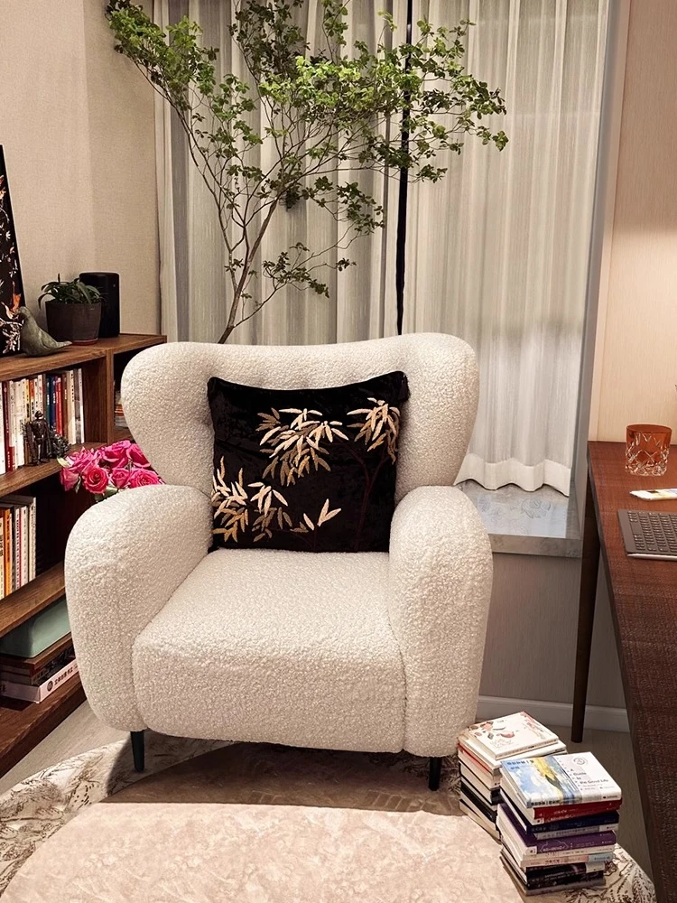 Cozy Lambswool Bedroom Chair for Girls – Stylish Single Makeup Stool & Lounge Sofa for Home Use, Perfect for Nail Art and Relaxation
