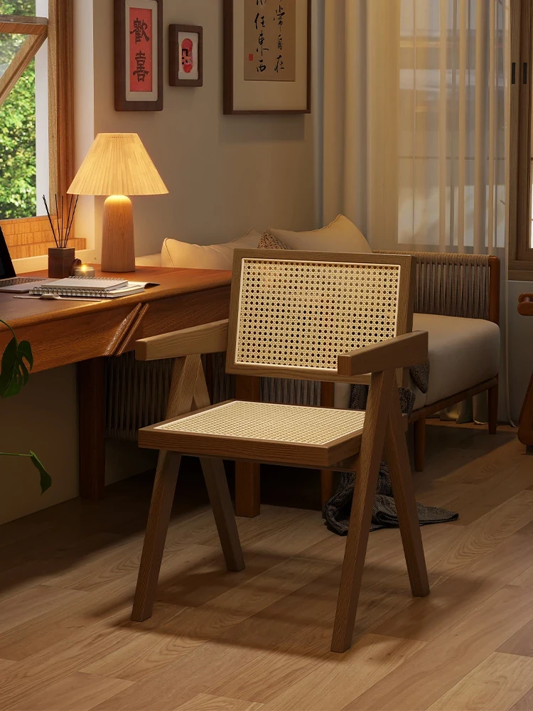 Comfortable Home Office Chair with Solid Wood Desk – Wabi-Sabi Style Lounge Chair for Bedroom, Rattan Accent Chair – Perfect for Long Hours of Sitting