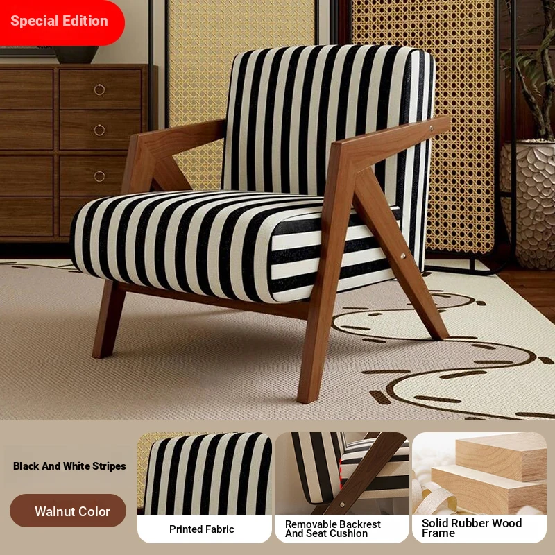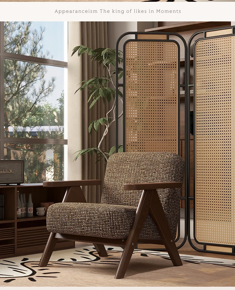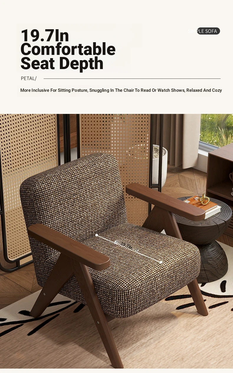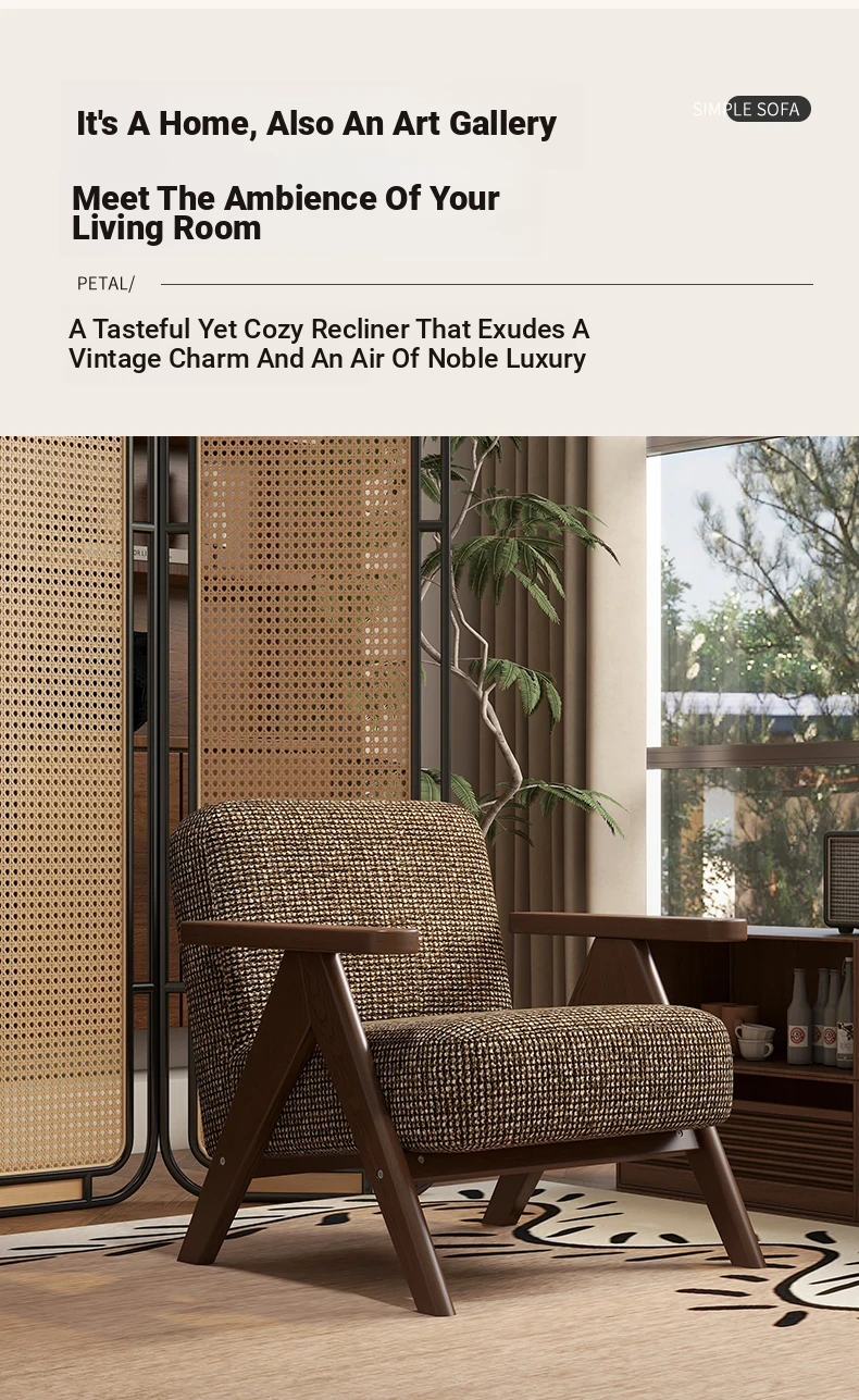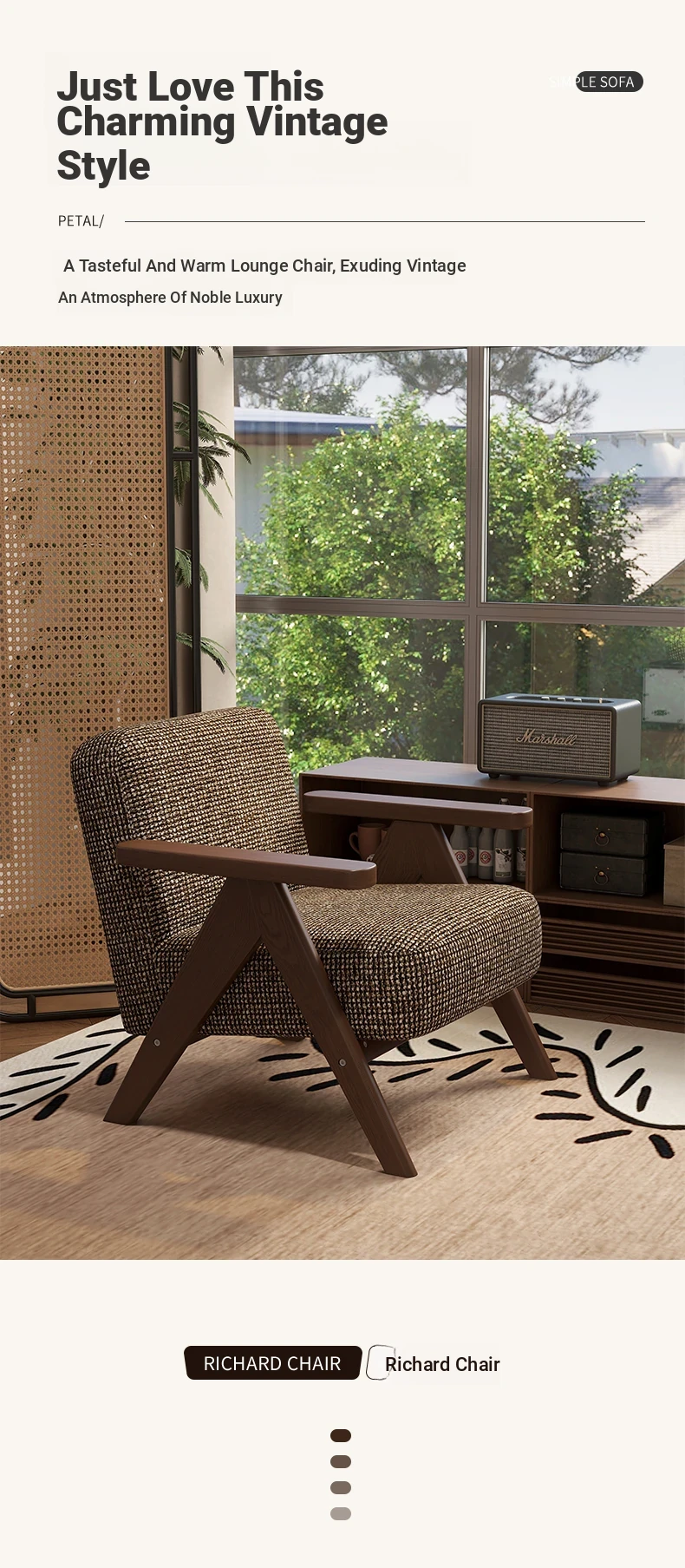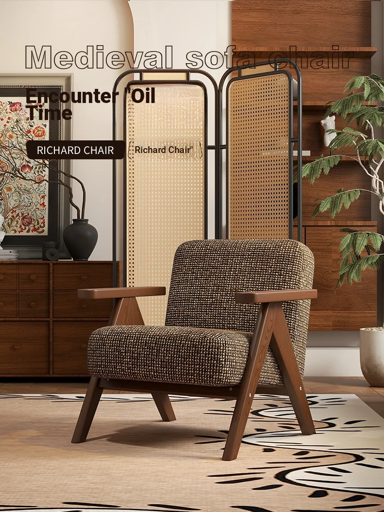 Richard French Vintage Single Sofa Chair – Stylish Solid Wood Designer Armchair for Living Room and Balcony, Perfect for Relaxation.