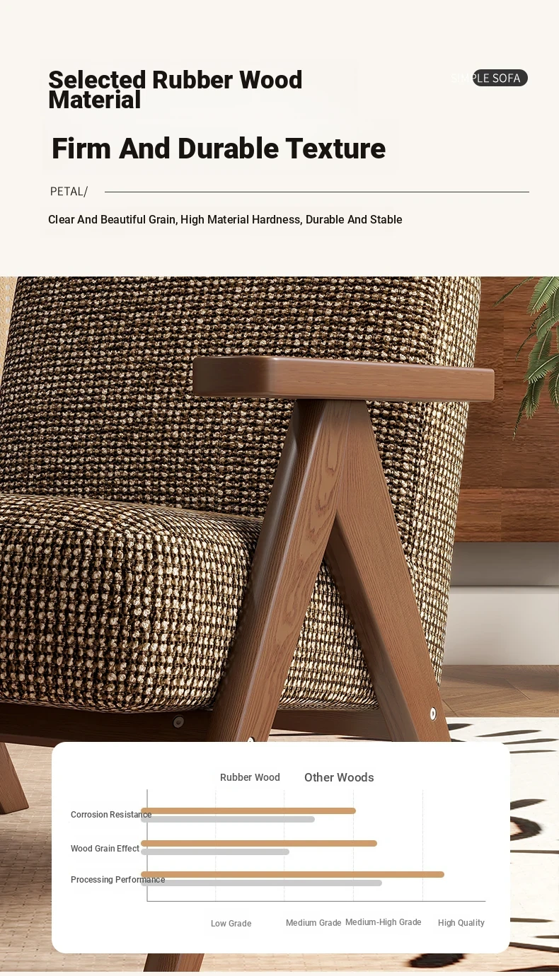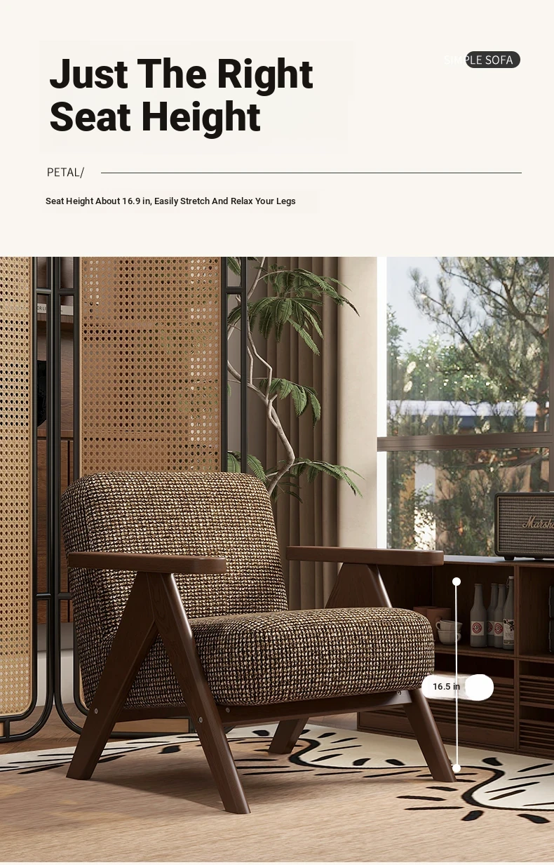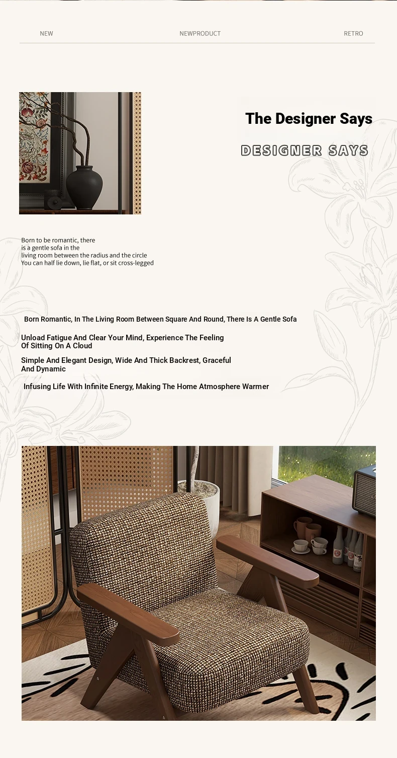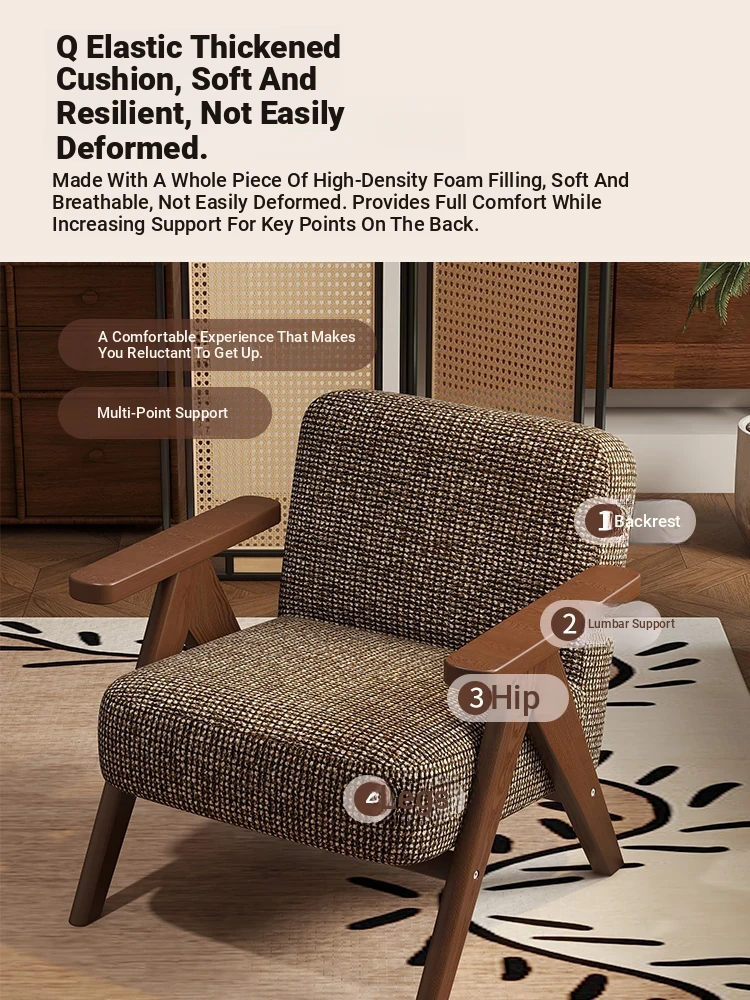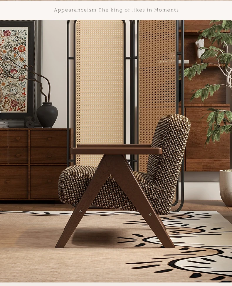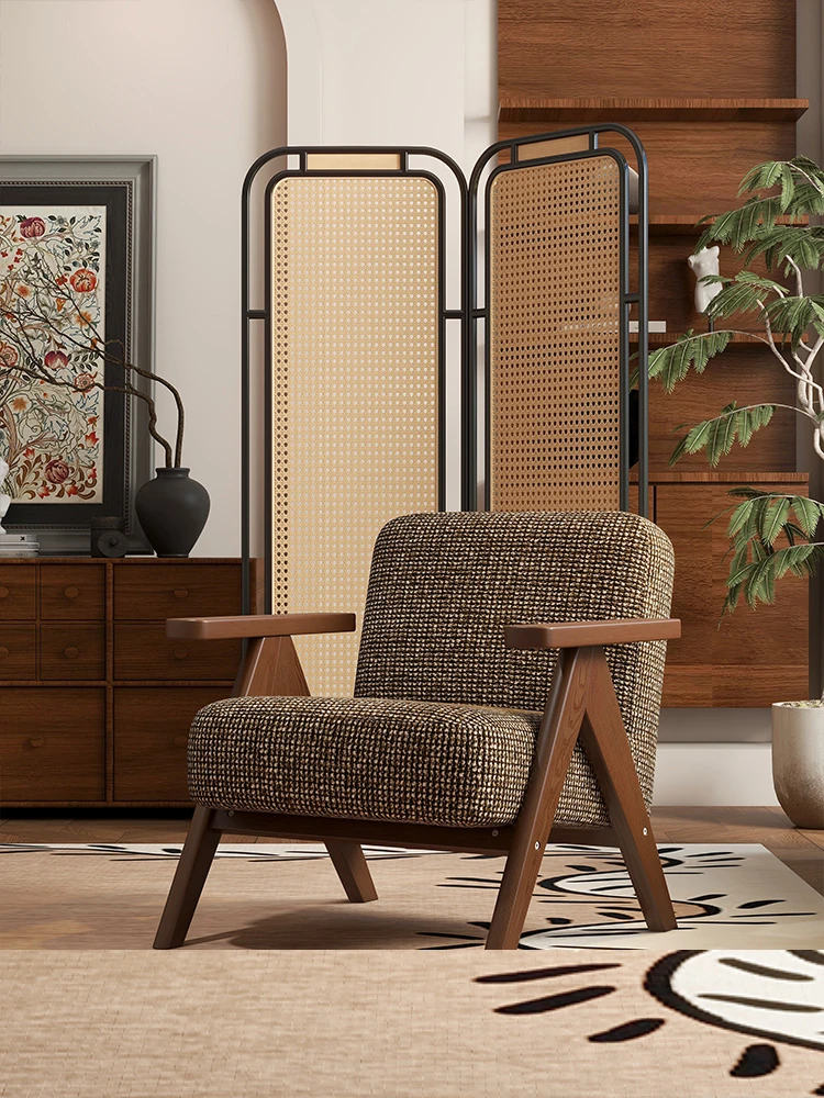 Richard French Vintage Single Sofa Chair – Stylish Solid Wood Designer Armchair for Living Room and Balcony, Perfect for Relaxation.
