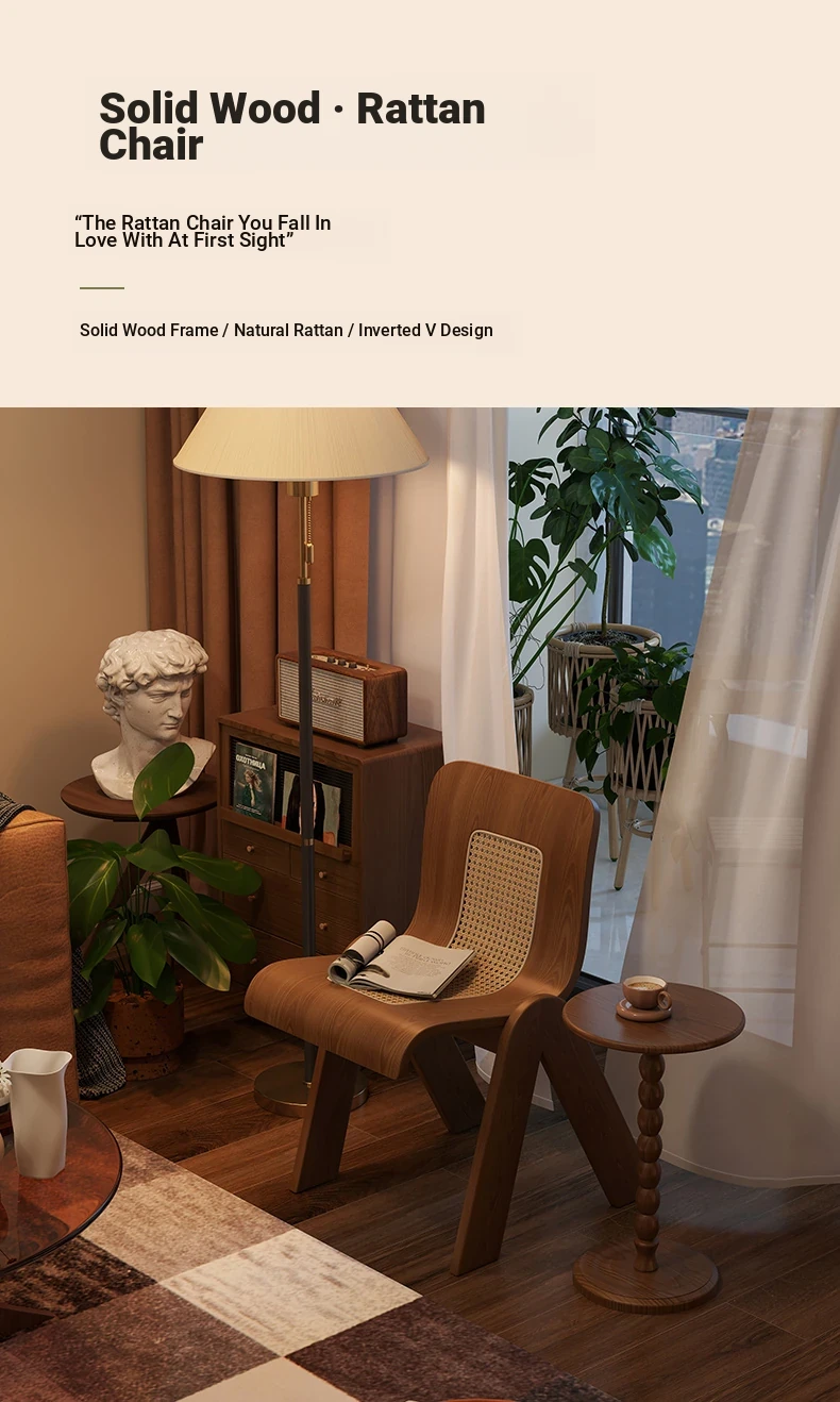 Vintage French Rattan Bistro Chair - Retro Lounge Chair for Balcony & Afternoon Tea - Perfect for Café & Restaurant Dining